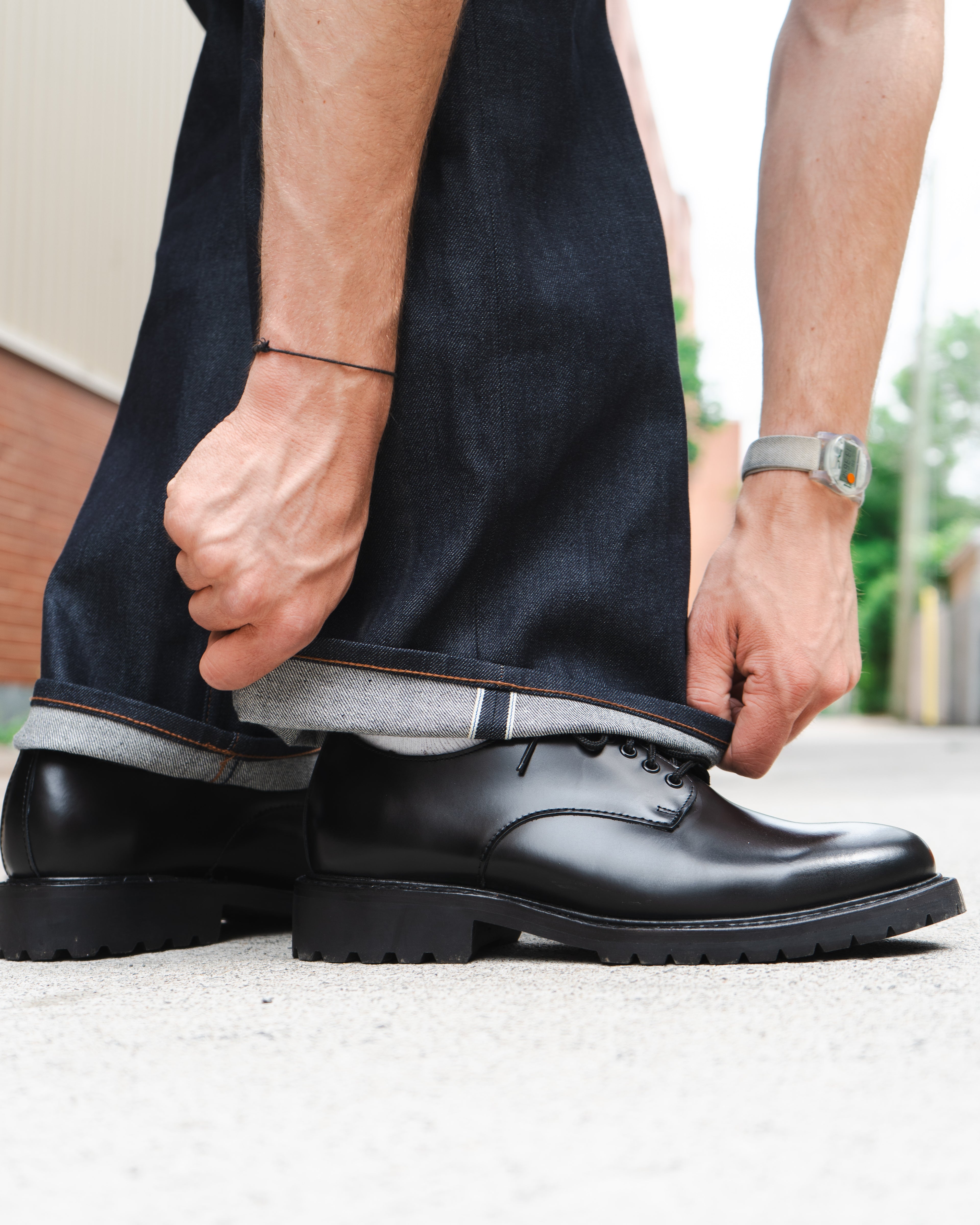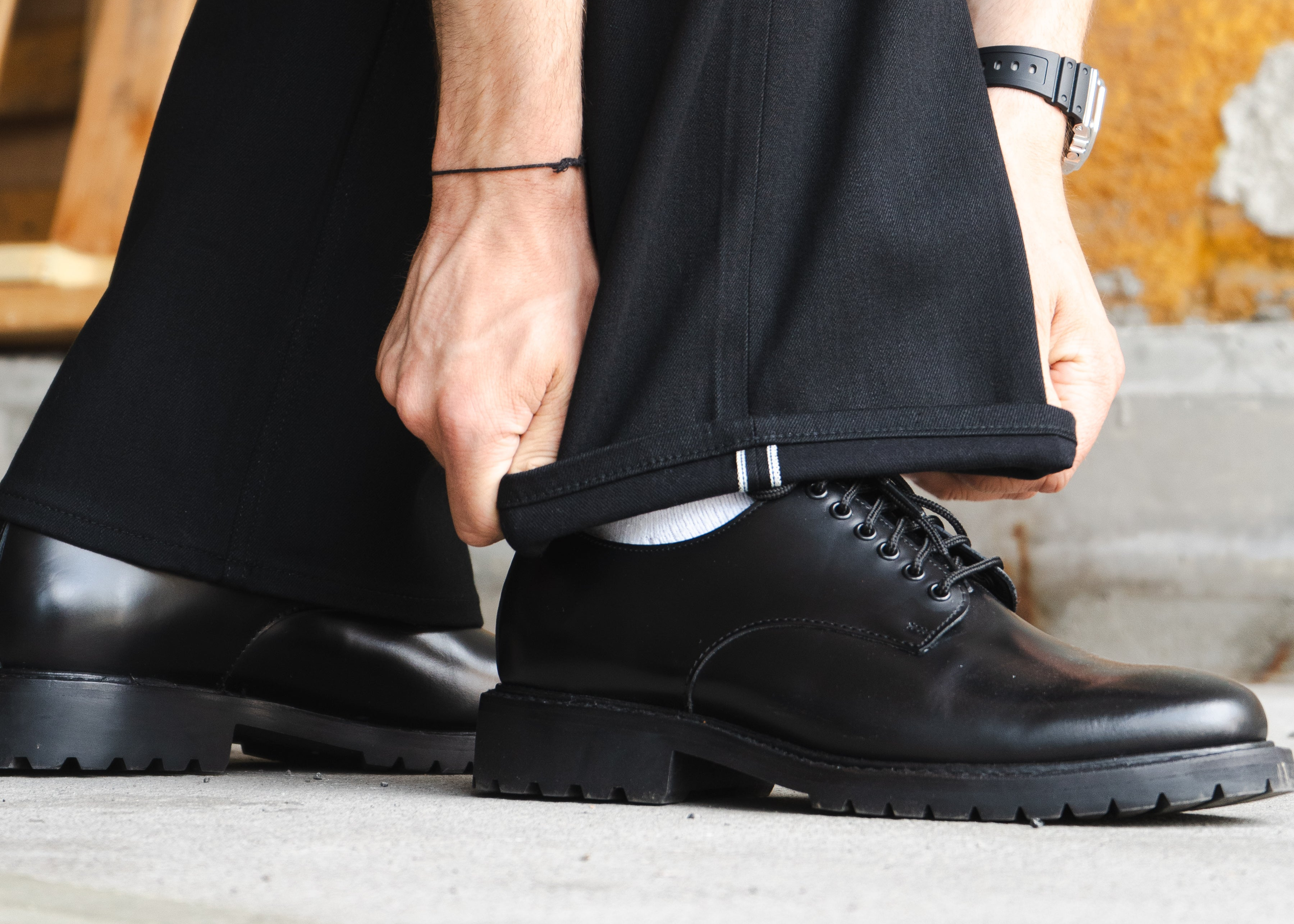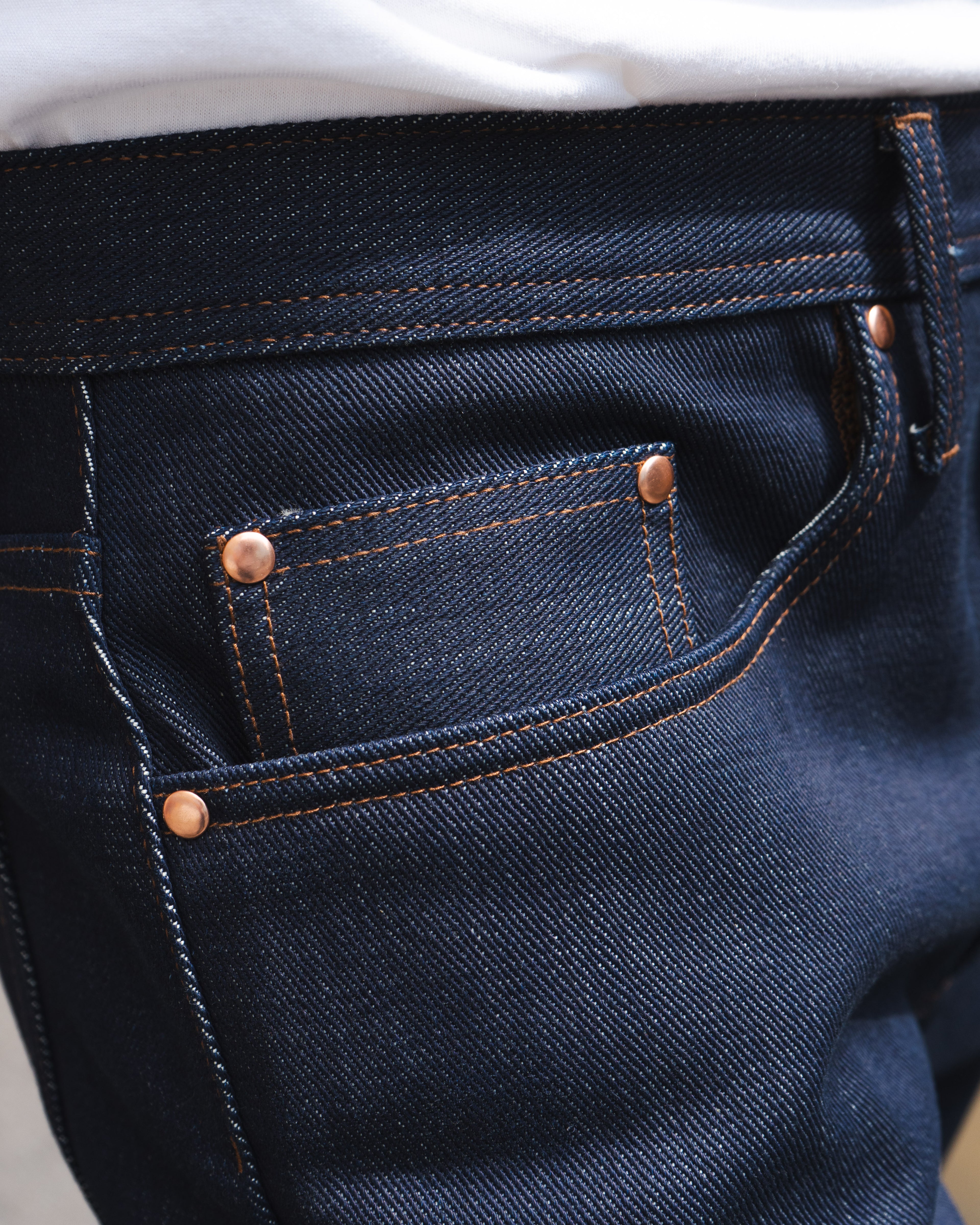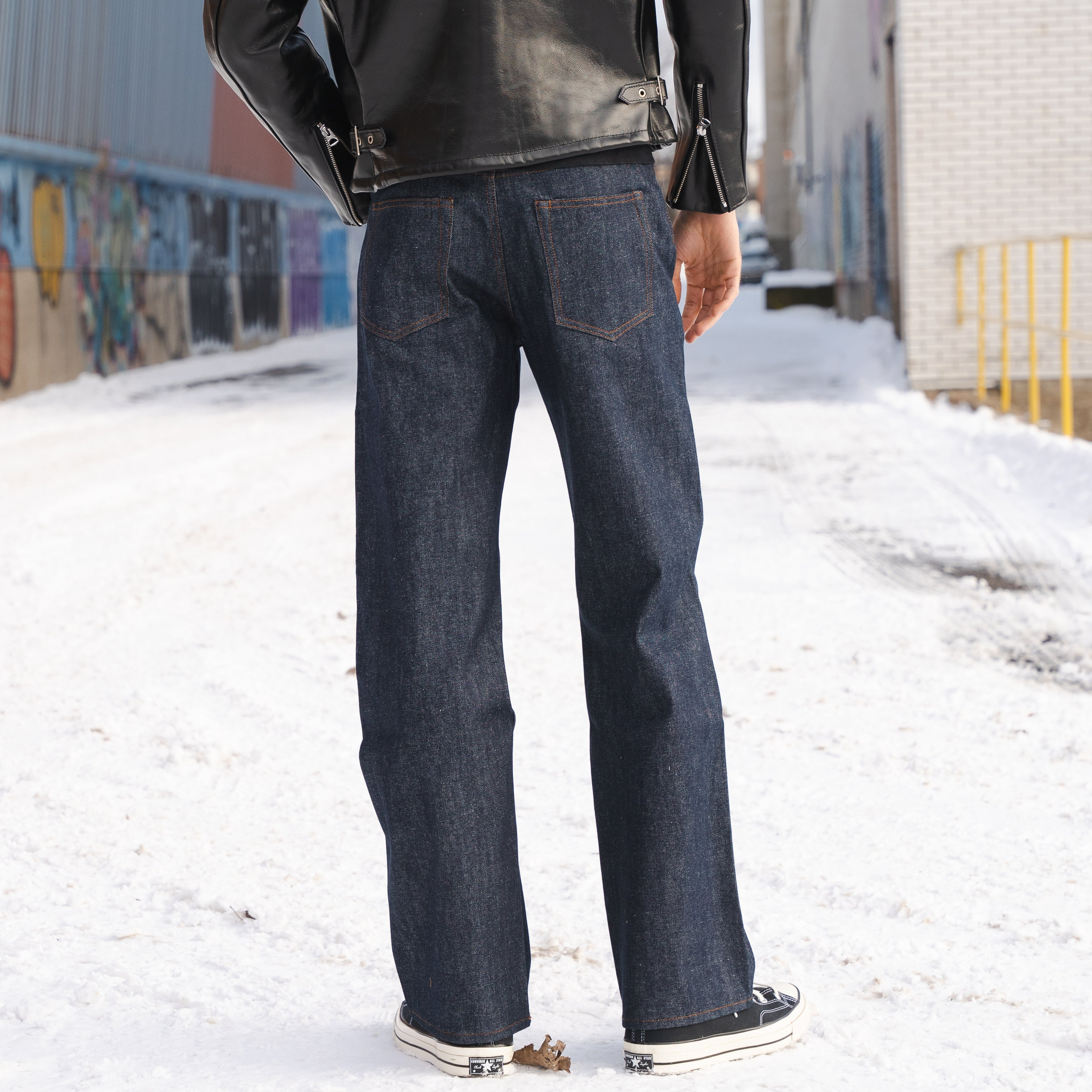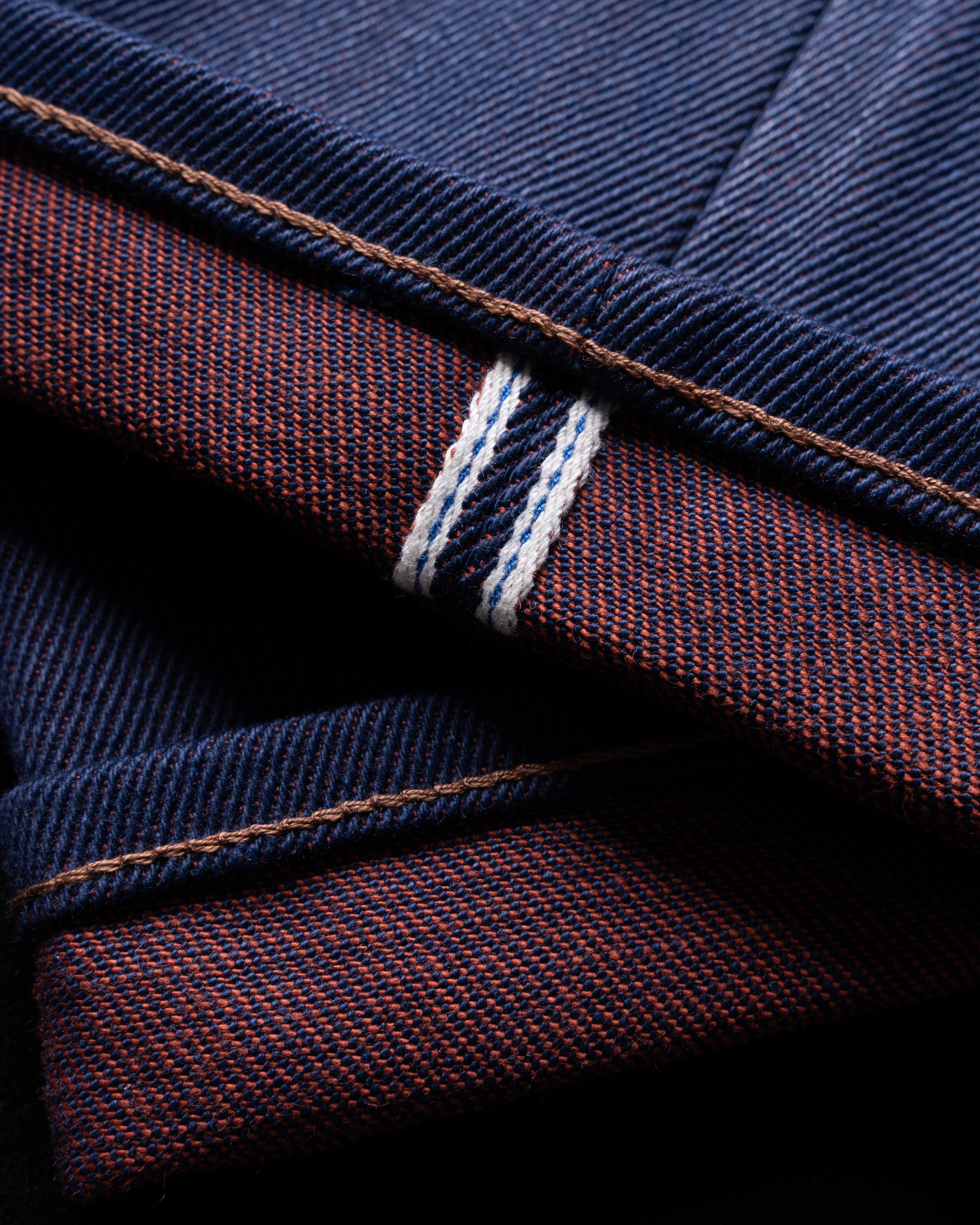 We've taken our classic, fast-fading, sanforized 21oz heavyweight fabric and added a deep red weft. Just like the regular 21oz, these will fade to blue over time; however, when you flip up the cuff, you'll get a pop of dark red.